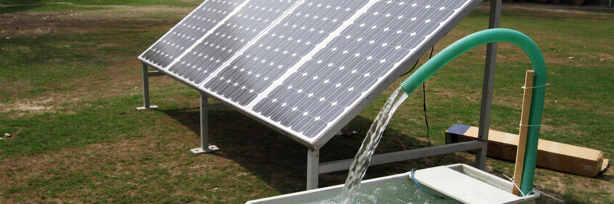 Solar water pumping systems are used to pump Good amount of water using solar energy. They can be practical solutions in rural areas not connected to an electrical grid.